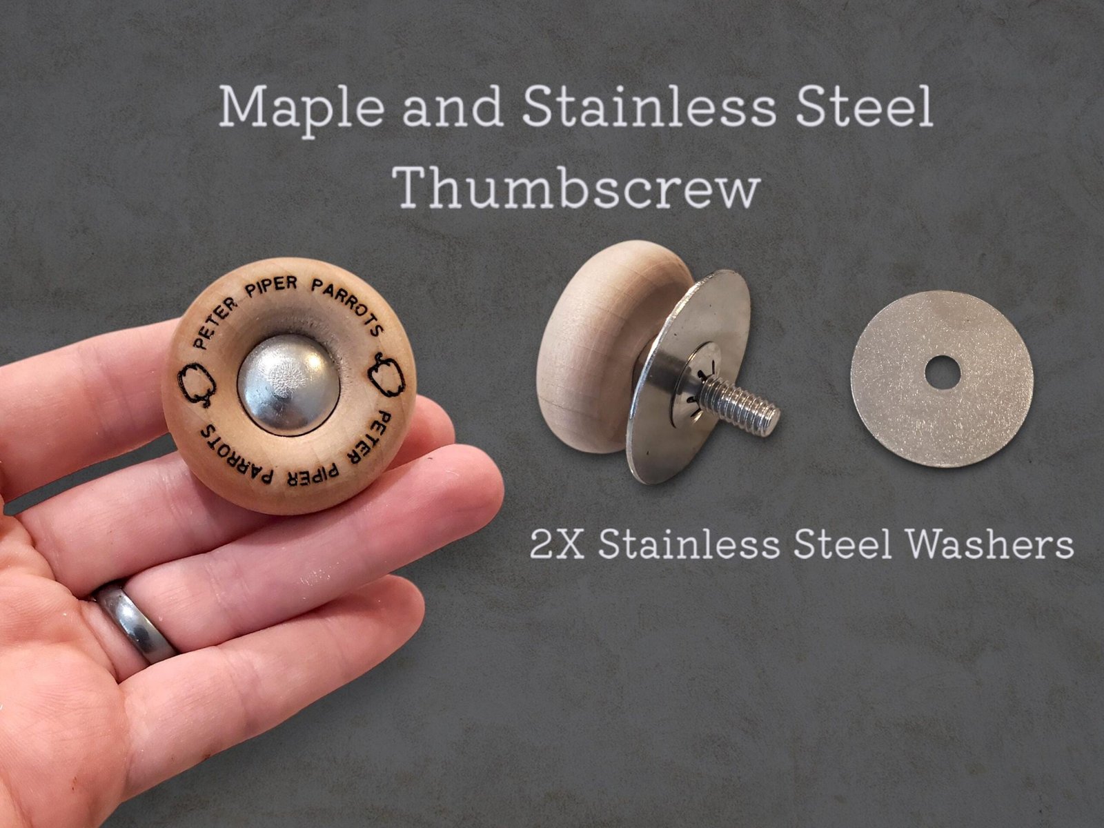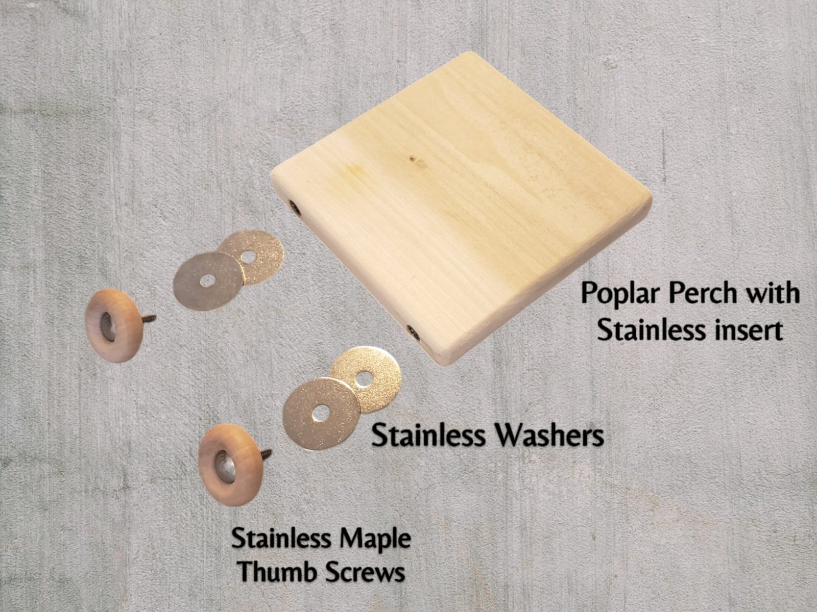 • Hardwood and stainless steel thumbscrew and 1-1/2″ stainless steel washers included for safe and secure mounting to enclosure bars.